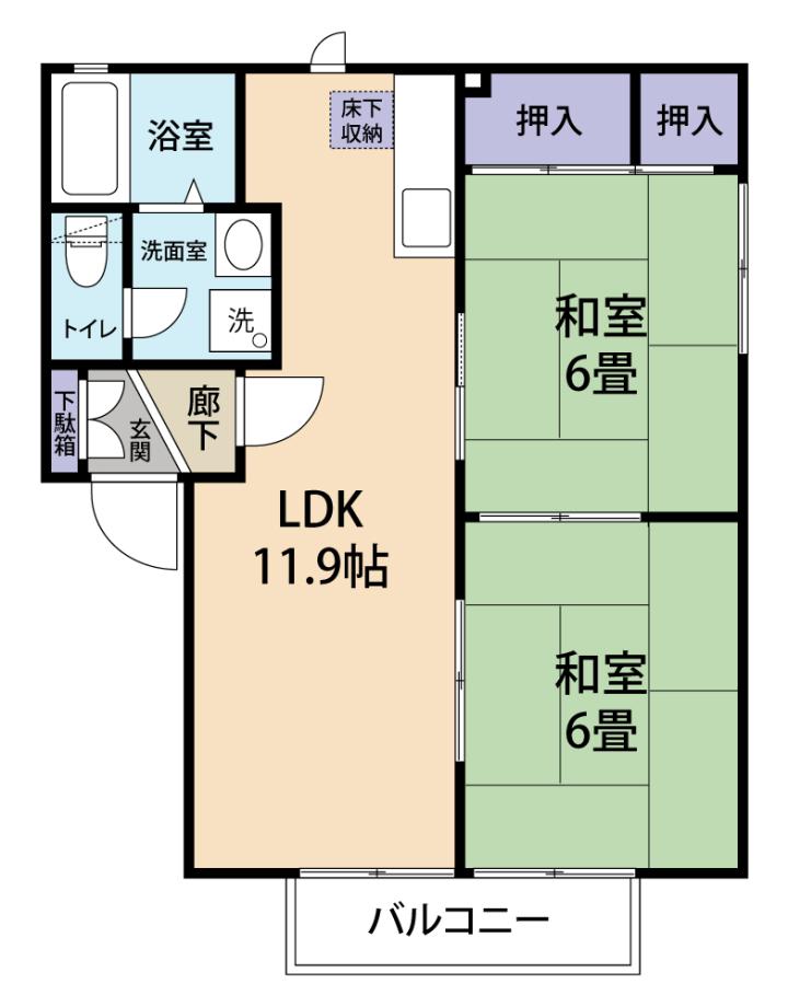 | 間取り詳細 | LDK11.9帖・和室6.0帖・和室6.0帖 |